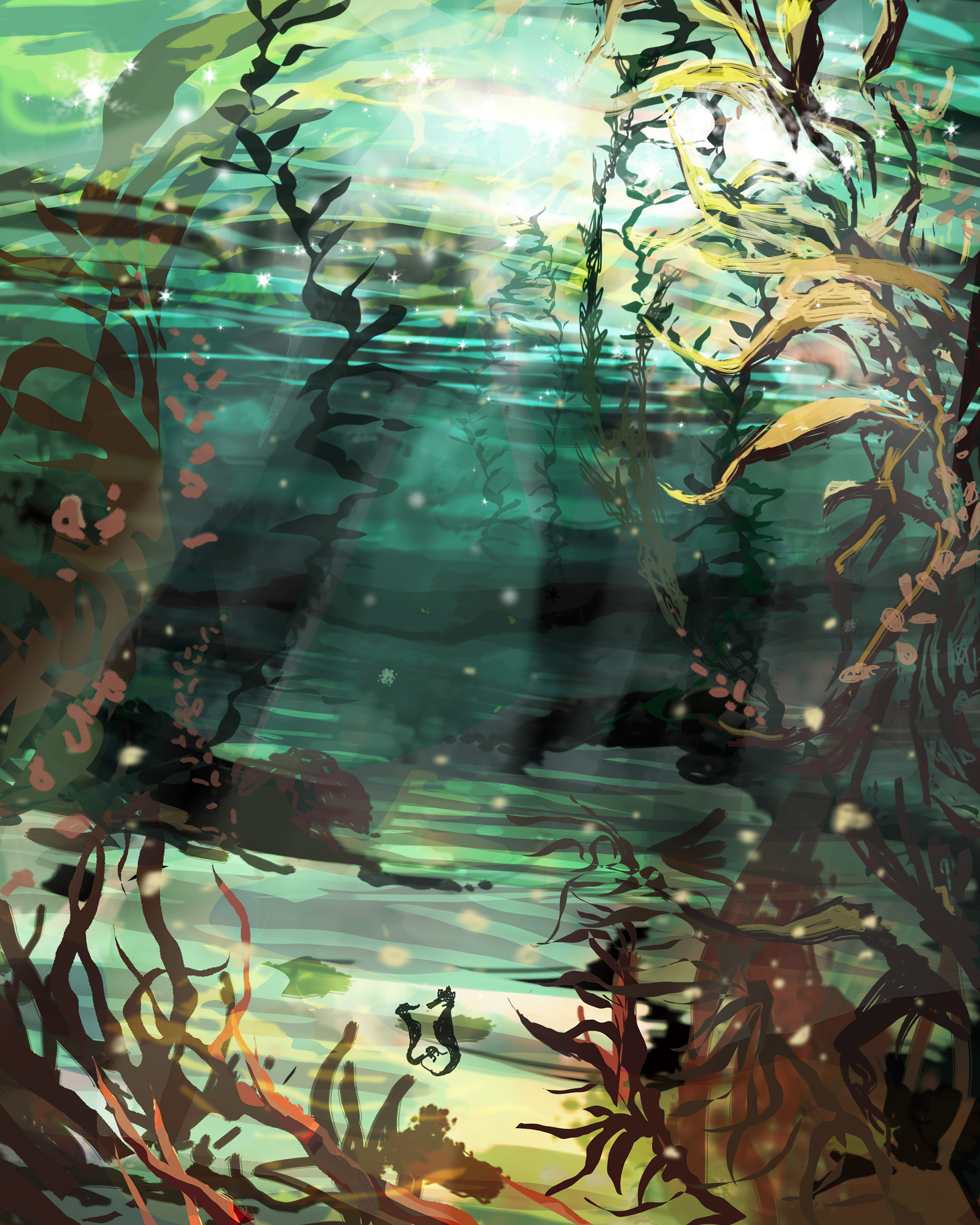 An environment study to follow up "Carry the Moon" seahorse illustration-for a children's book idea.