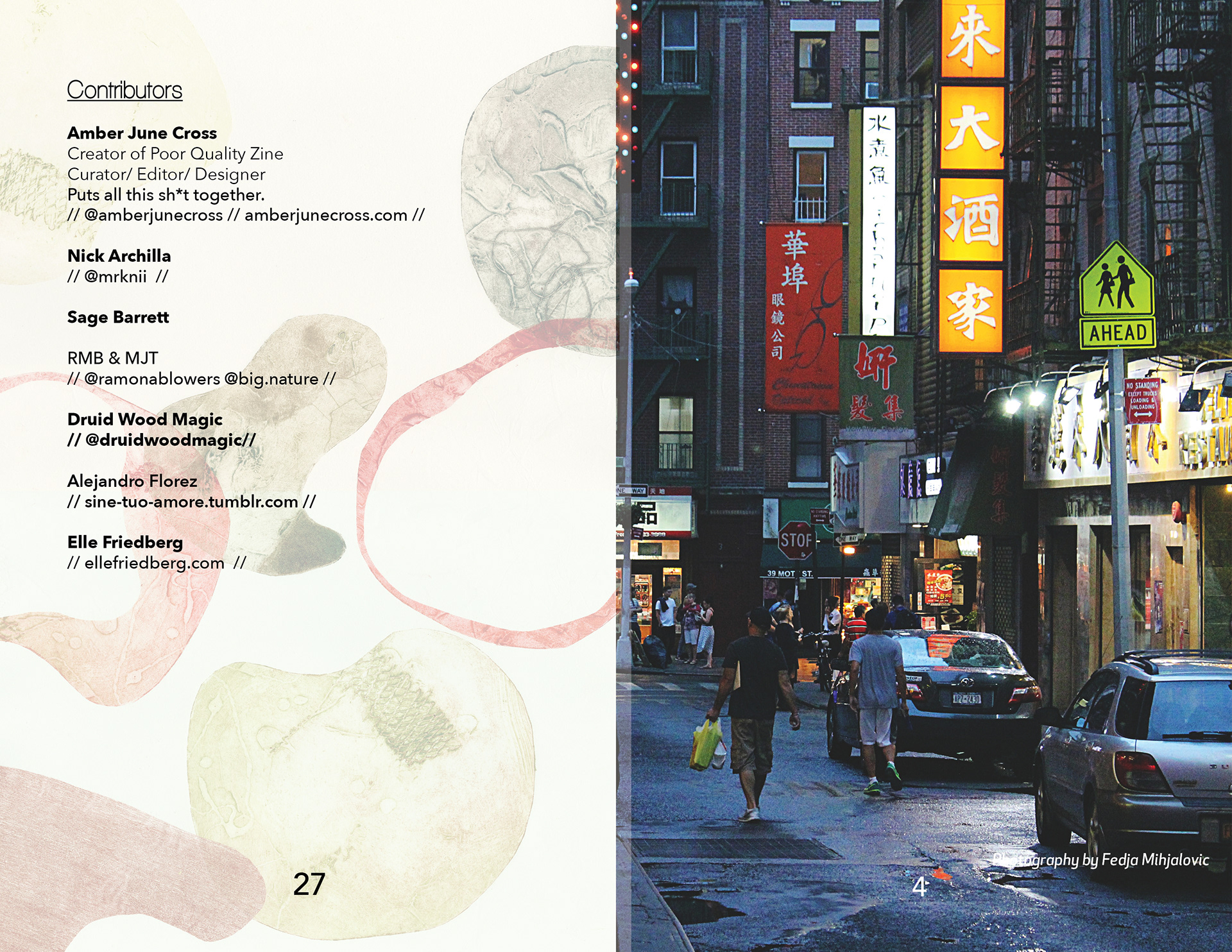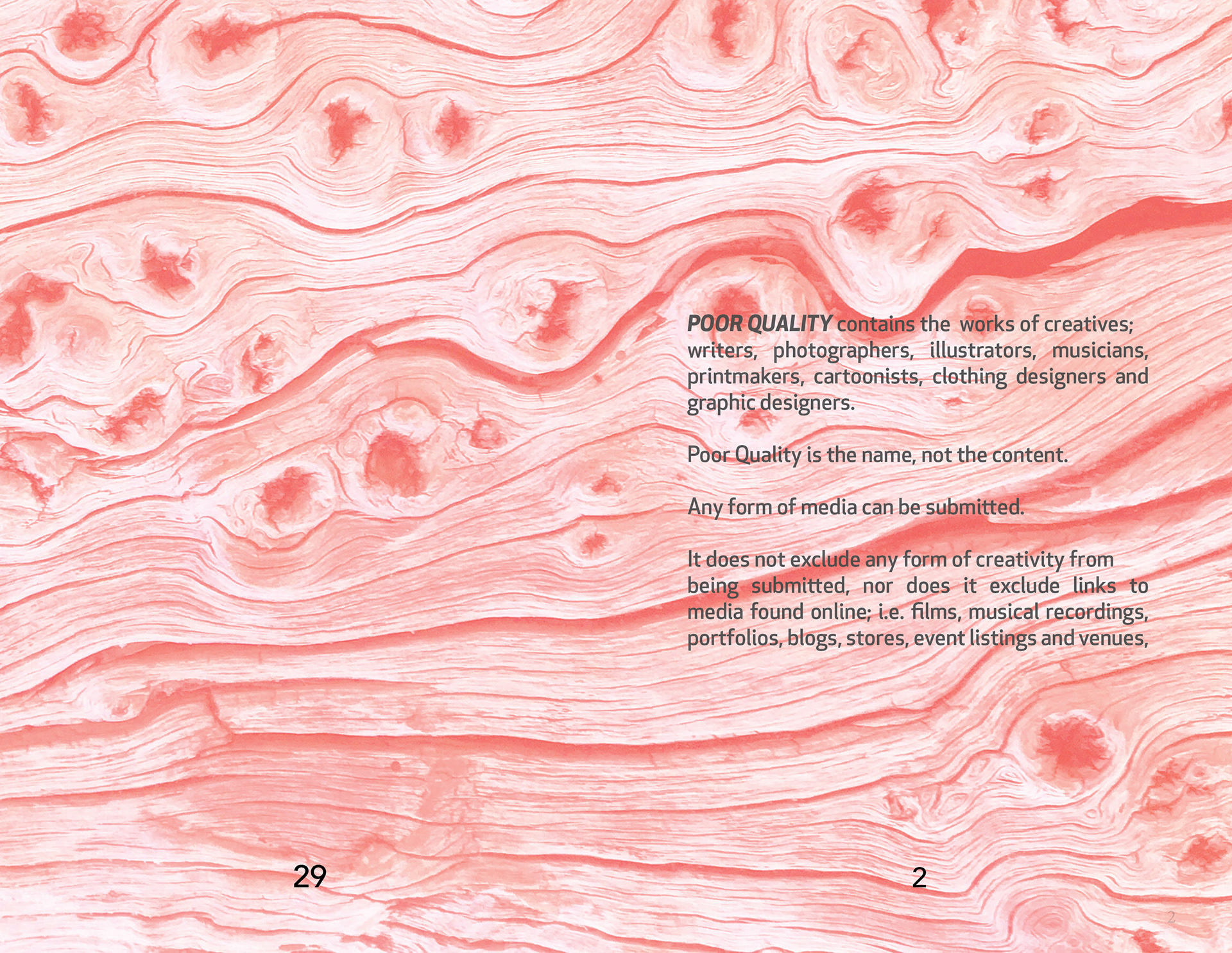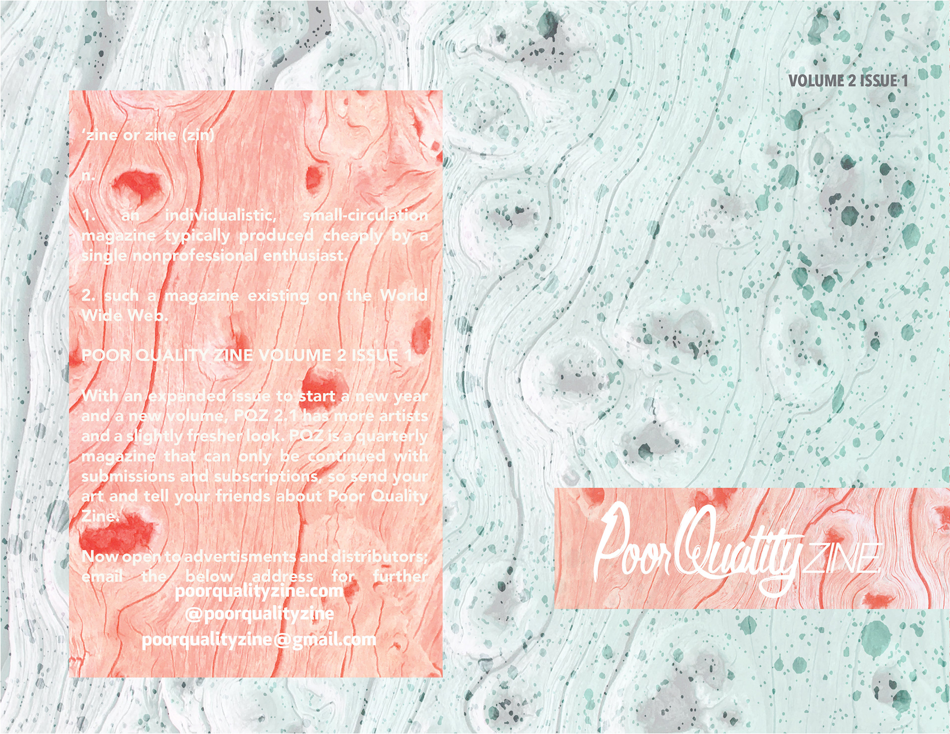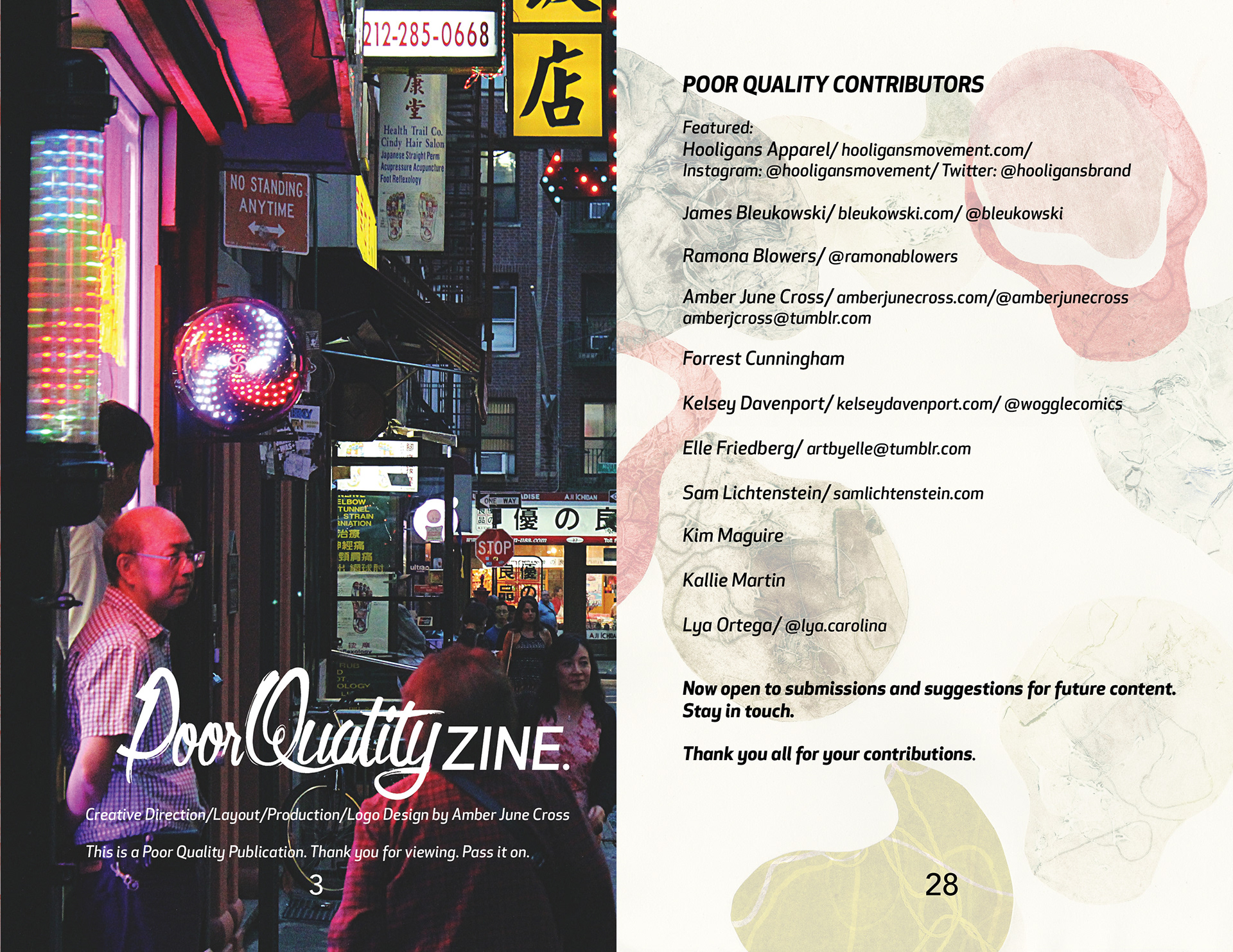 Self-curated content, page layouts and brand design for the second Volume of Poor Quality Zine.