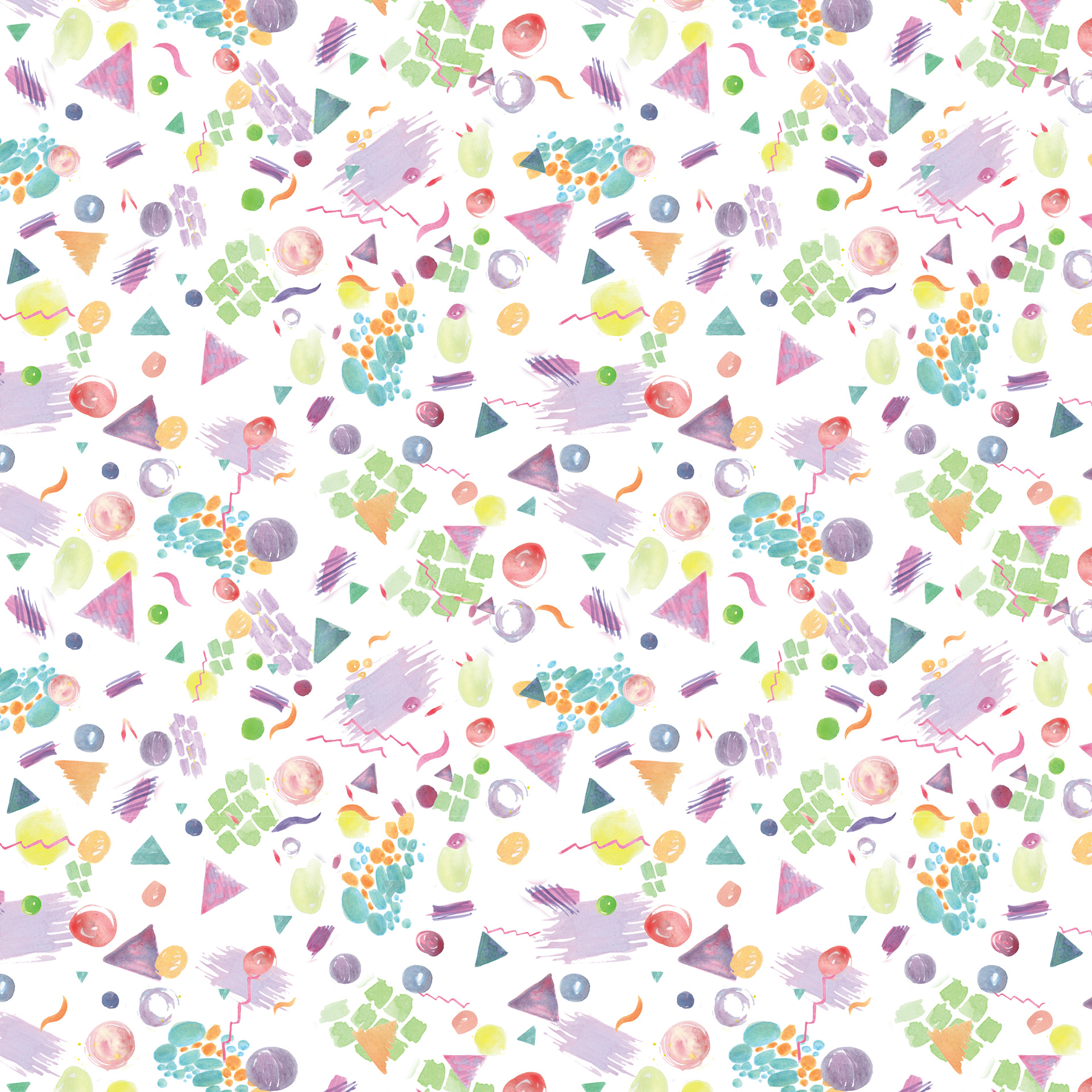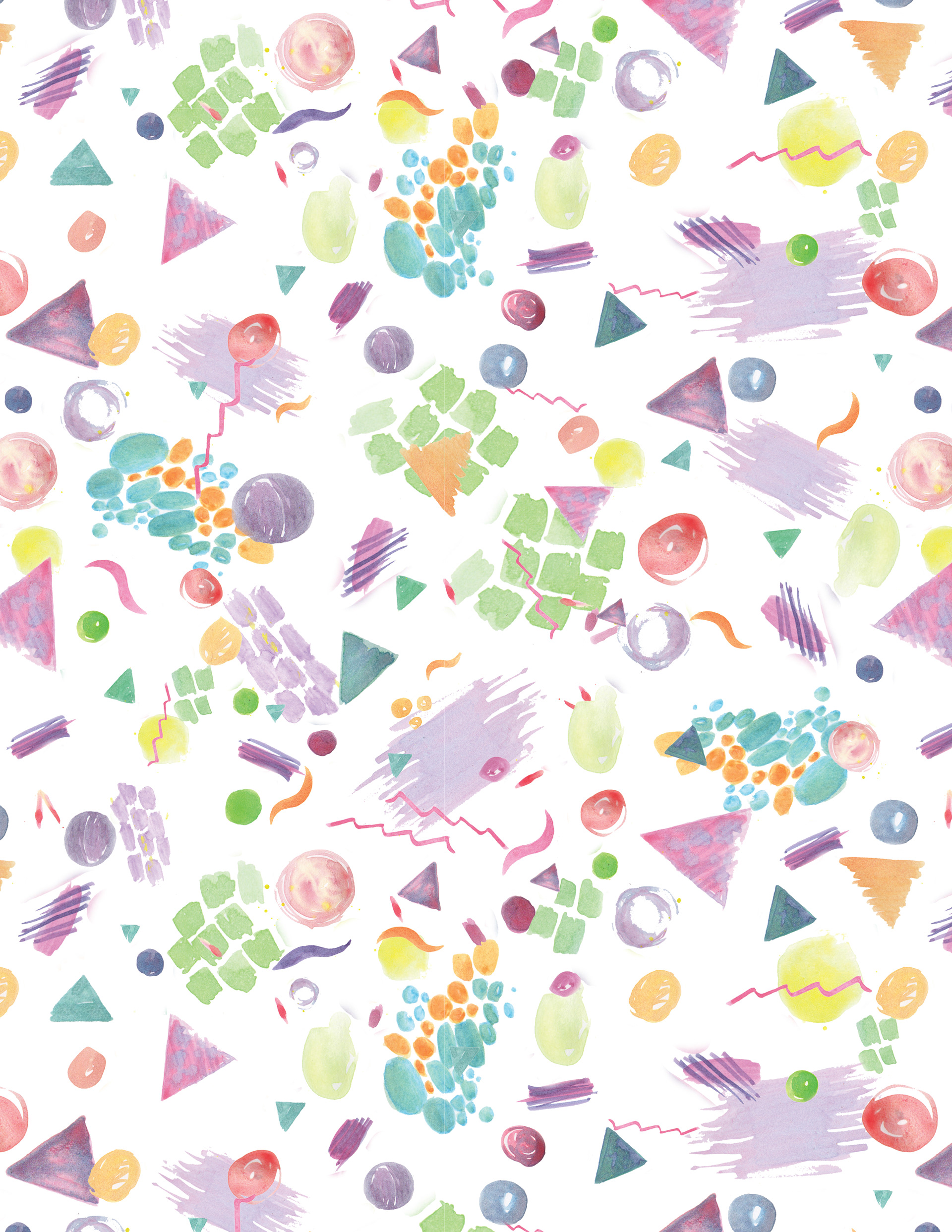 90's inspired retro watercolor shape repeat pattern