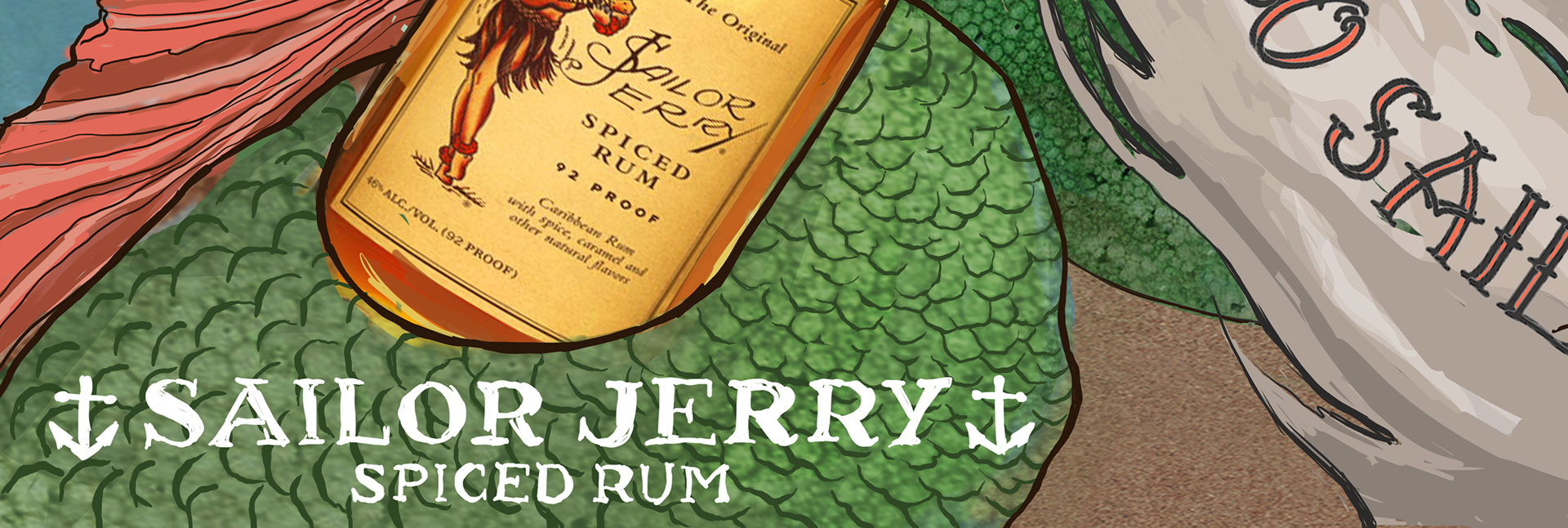 A billboard advertisement an illustration assignment; for Sailor Jerry Spiced Rum.