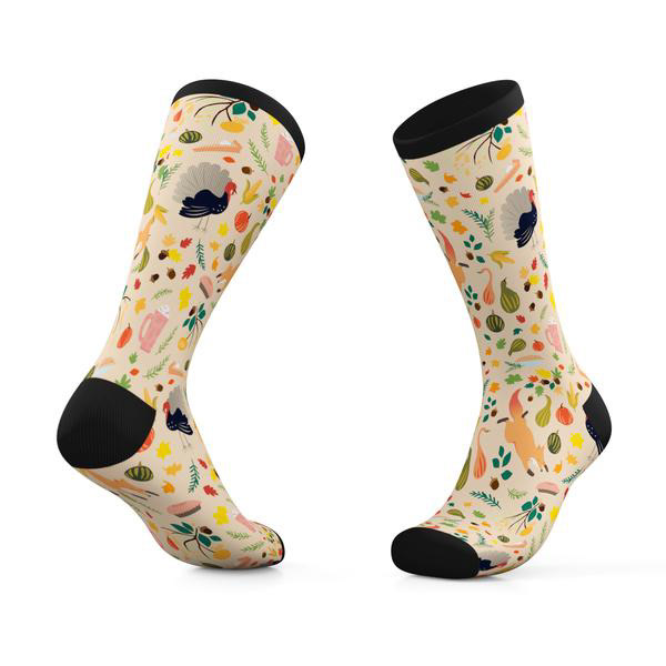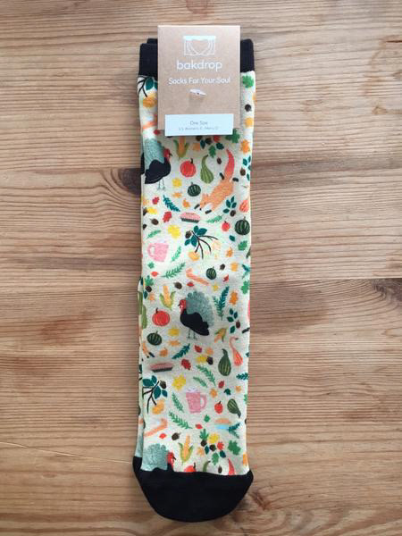 A Thanksgiving print created for Bakdrop Socks to be sold to benefit a nonprofit around the holiday season. The design was sold out by the holiday!